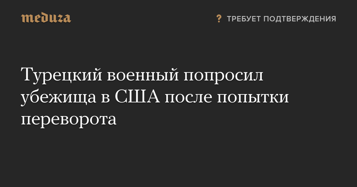 Турецкий военнослужащий обратился к властям США с просьбой о политическом убежище после попытки переворота в Турции. Ранее ни один турецкий военный к США с такой просьбой не обращался.