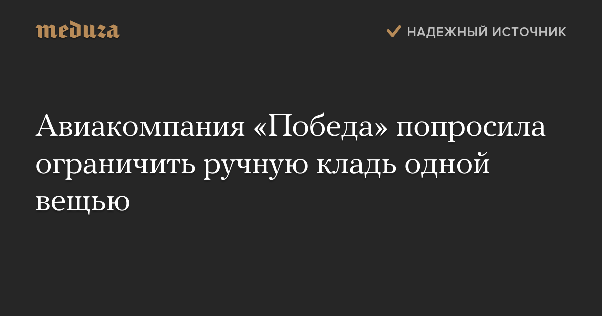 Авиакомпания «Победа» попросила ограничить ручную кладь одной вещью