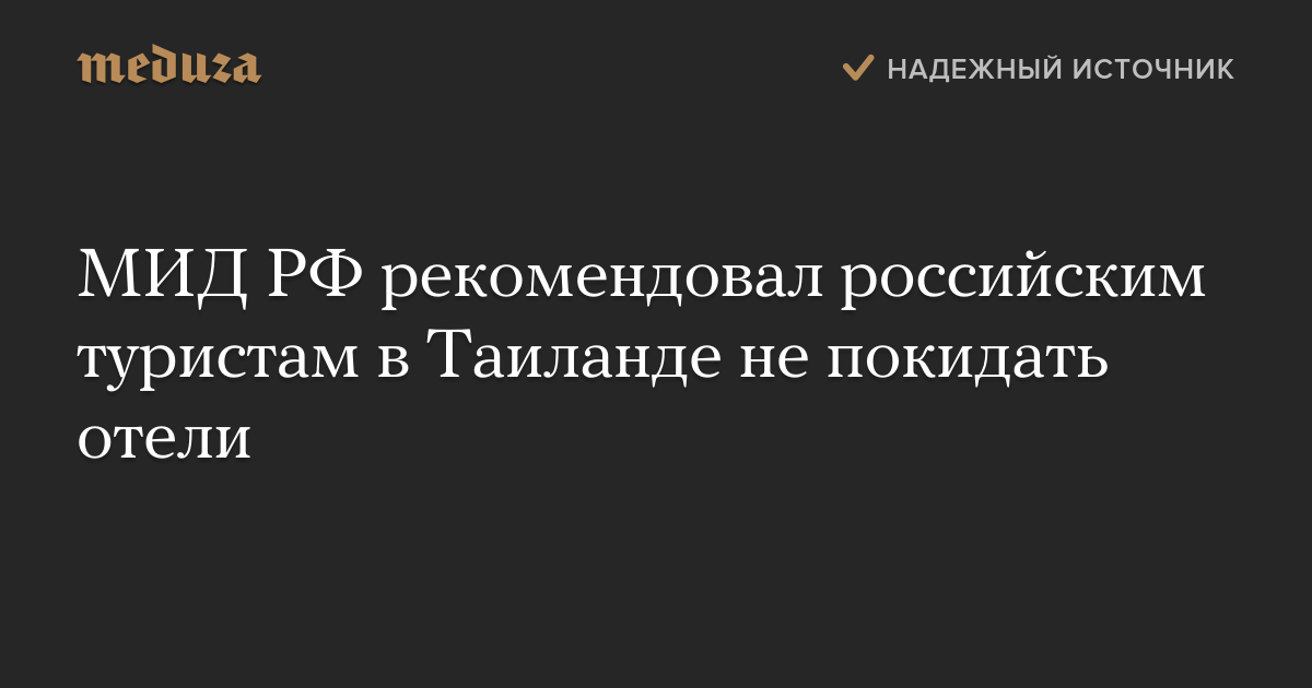 МИД РФ рекомендовал российским туристам в Таиланде не покидать отели