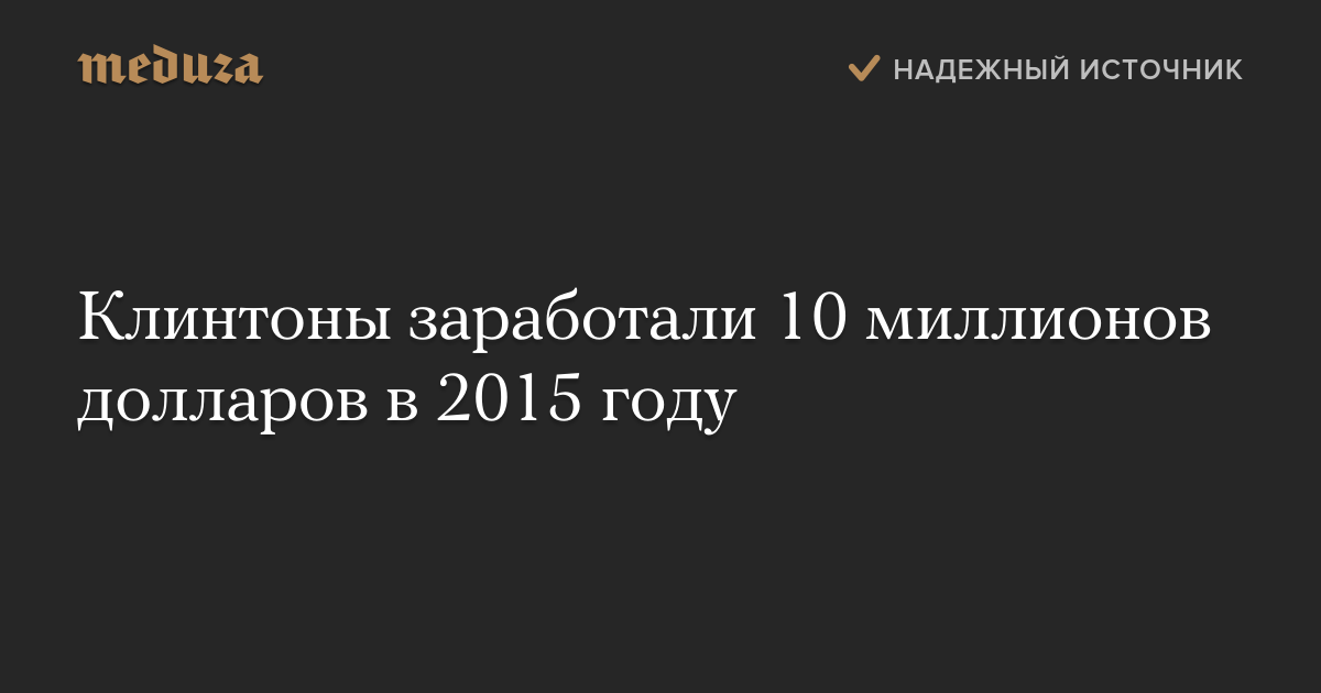 Клинтоны заработали 10 миллионов долларов в 2015 году