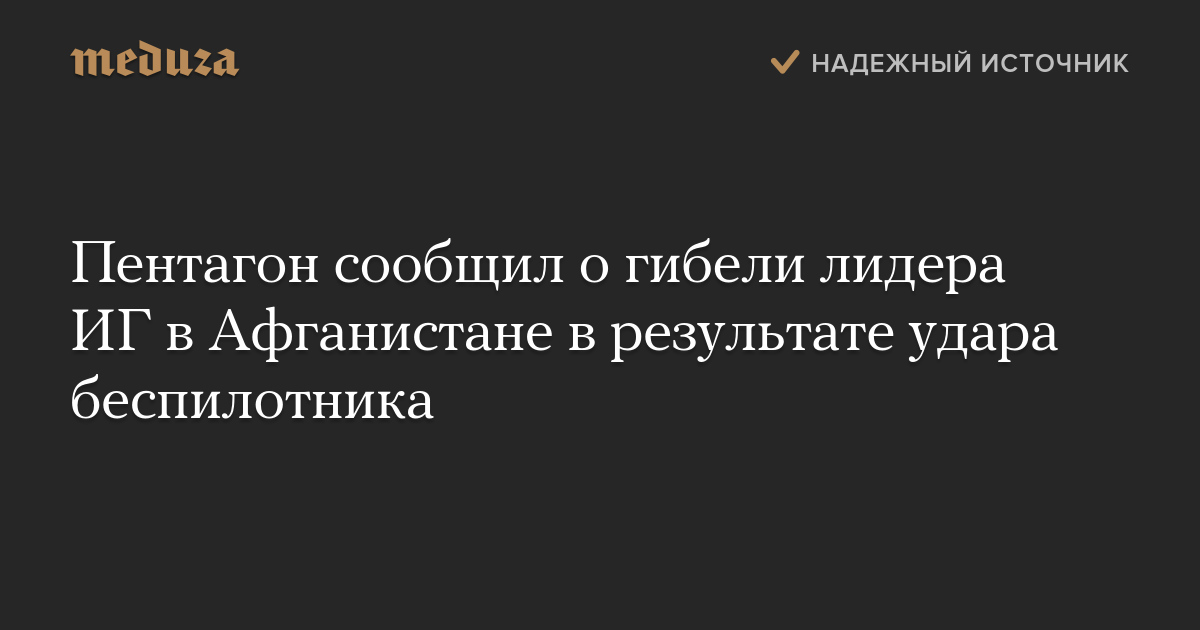 Пентагон сообщил о гибели лидера ИГ в Афганистане в результате удара беспилотника