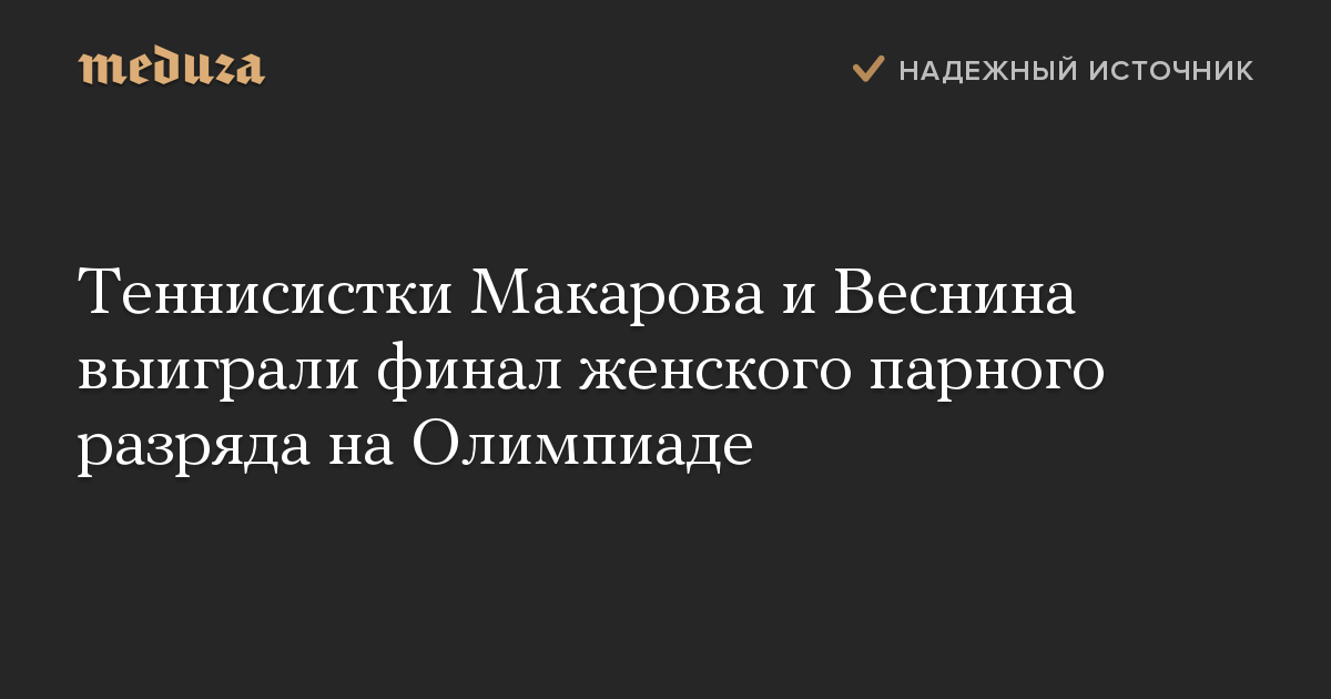 Российские теннисистки Екатерина Макарова и Елена Веснина выиграли золото в женском парном разряде на Олимпиаде 2016 года в Рио-де-Жанейро, обыграв швейцарских спортсменок Мартину Хингис и Тимею Бачински.