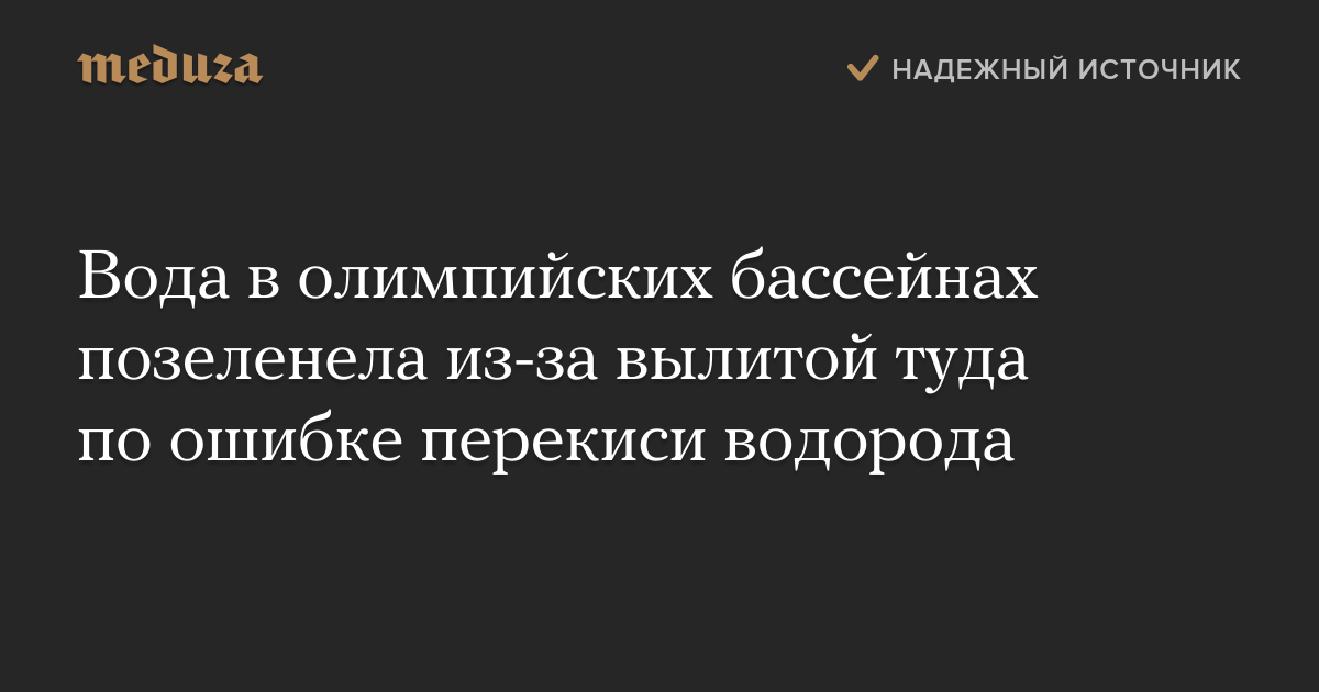 Вода в олимпийских бассейнах позеленела из-за вылитой туда по ошибке перекиси водорода