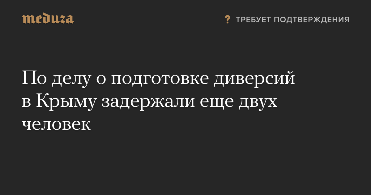 По подозрению в подготовке диверсий в Крыму задержаны еще два человека. Об этом сообщает агентство «Интерфакс» со ссылкой на источник в правоохранительных органах. По его словам, подозреваемые — жители Крыма, недавно получившие гражданство России.