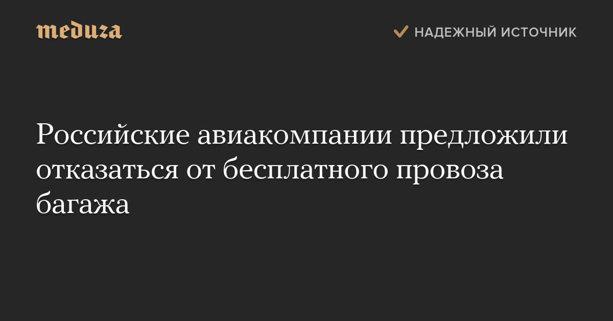 Российские авиакомпании предложили отказаться от бесплатного провоза багажа