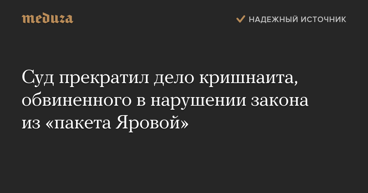 Суд прекратил дело кришнаита, обвиненного в нарушении закона из «пакета Яровой»