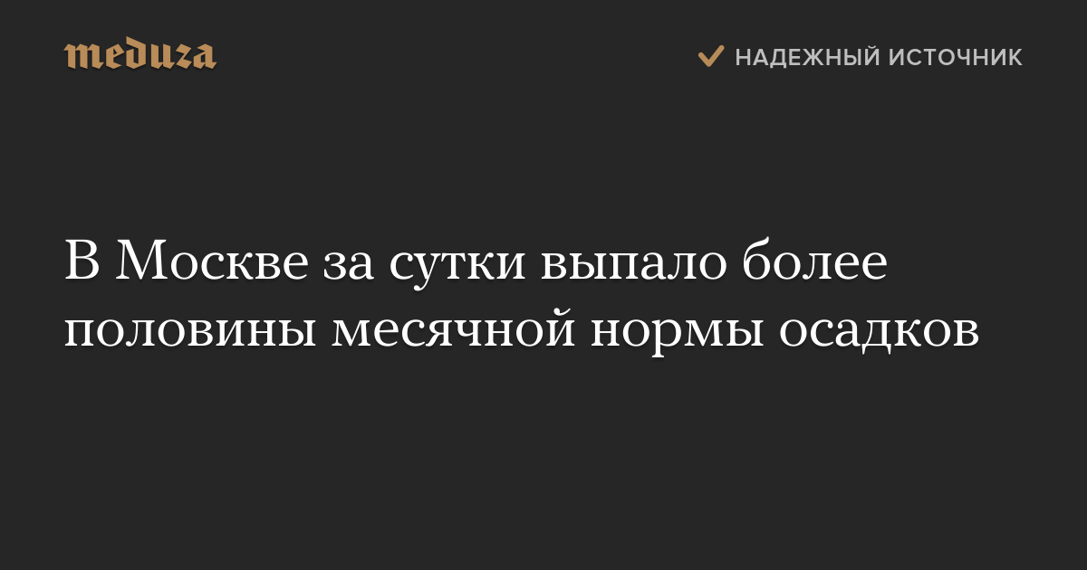 В Москве за прошедшие сутки выпало более 50 процентов месячной нормы осадков, сообщили РИА Новости в погодном центре «Фобос».