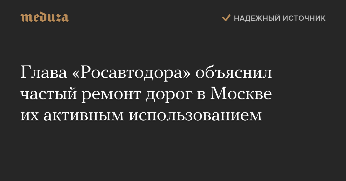 Глава «Росавтодора» объяснил частый ремонт дорог в Москве их активным использованием