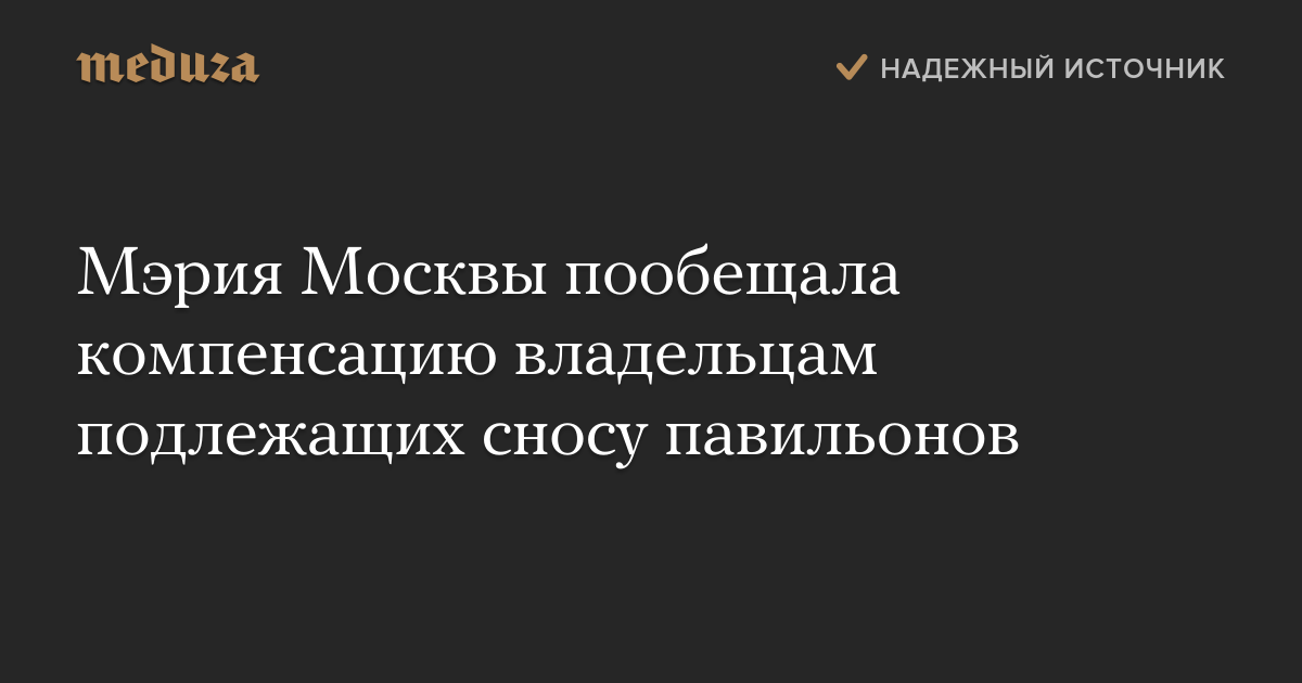 Мэрия Москвы пообещала компенсацию владельцам подлежащих сносу павильонов