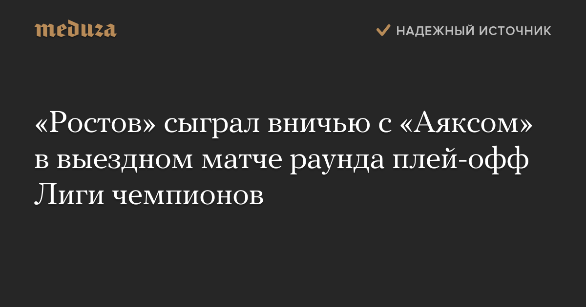 Первый матч раунда плей-офф Лиги чемпионов между голландским «Аяксом» и «Ростовом» завершился вничью со счетом 1:1.