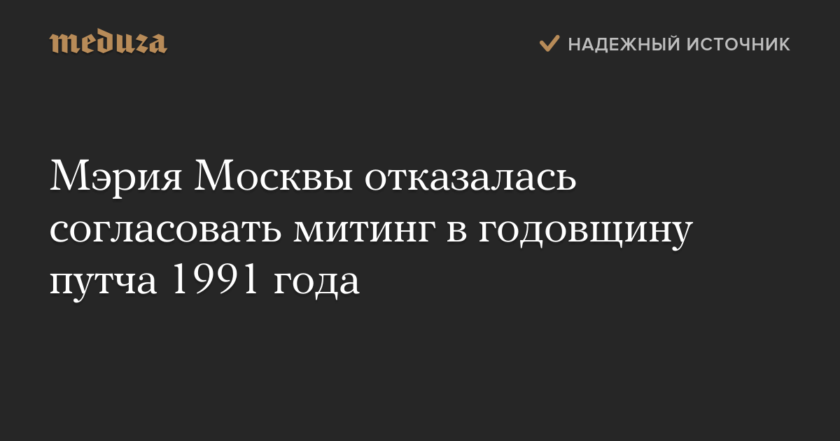 Мэрия Москвы отказалась согласовать митинг в годовщину путча 1991 года