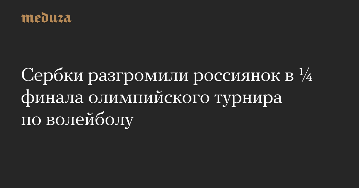 Женская сборная России по волейболу проиграла в ¼ финала олимпийского турнира команде Сербии со счетом 0:3. В первой партии россиянки проиграли 9:25, во второй — 22:25, в третьей — 21:25.
