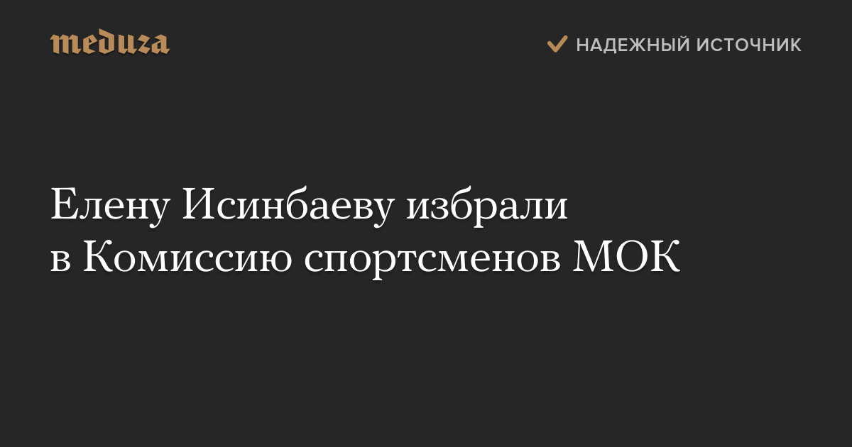Российская спортсменка Елена Исинбаева стала членом Комиссии спортсменов Международного Олимпийского комитета. Кроме того, в этот орган МОК избраны немецкая фехтовальщица Бритта Хайдеман, венгерский пловец Даниель Дьюрта и южнокорейский игрок в настольный теннис Ю Сын Мин.