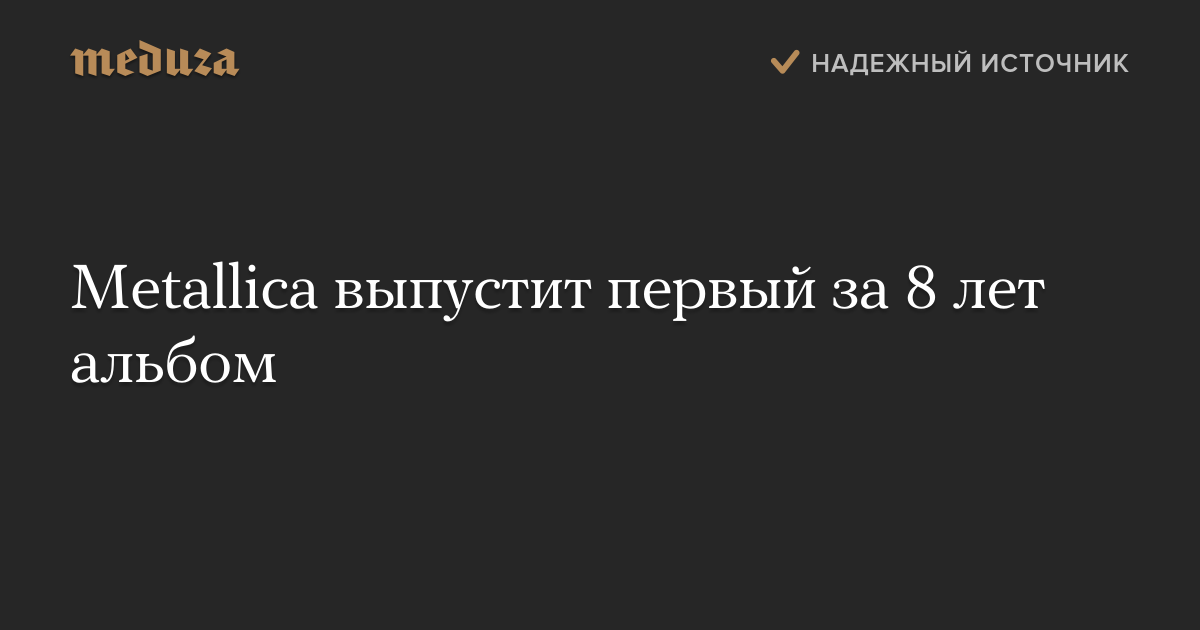 Американская группа Metallica анонсировала выход первого за 8 лет студийного альбома, который получил название «Hardwired… To Self-Destruct». Альбом выйдет 18 ноября.