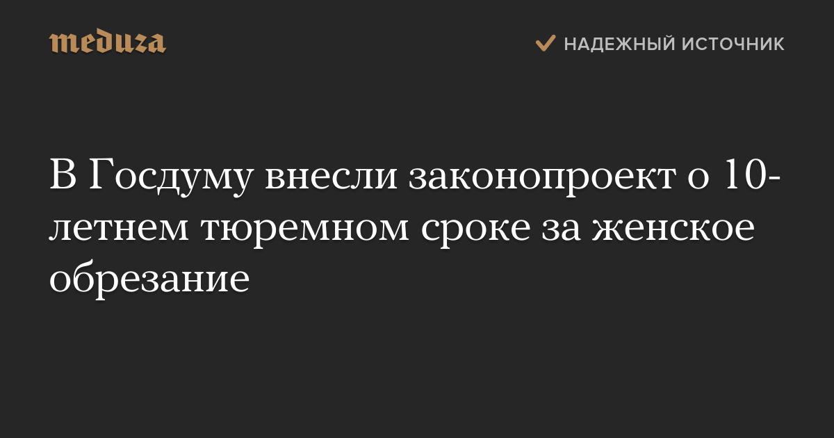 В Госдуму внесли законопроект о 10-летнем тюремном сроке за женское обрезание