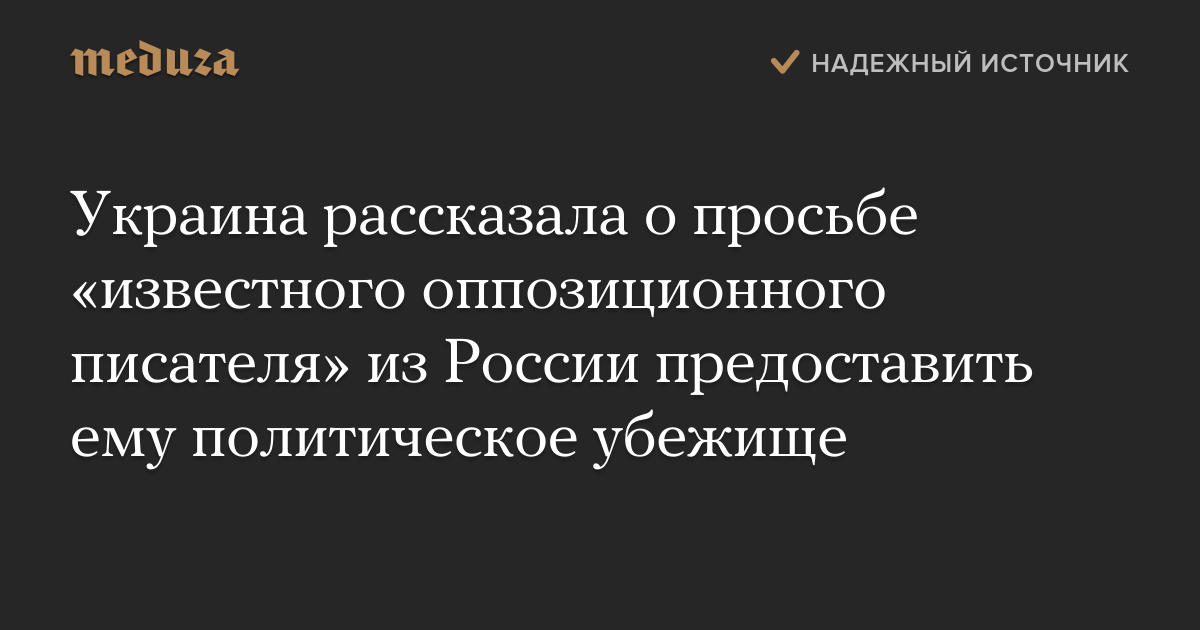 Украина рассказала о просьбе «известного оппозиционного писателя» из России предоставить ему политическое убежище