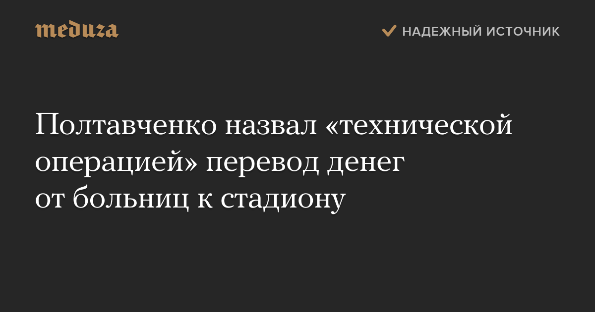 Полтавченко назвал «технической операцией» перевод денег от больниц к стадиону