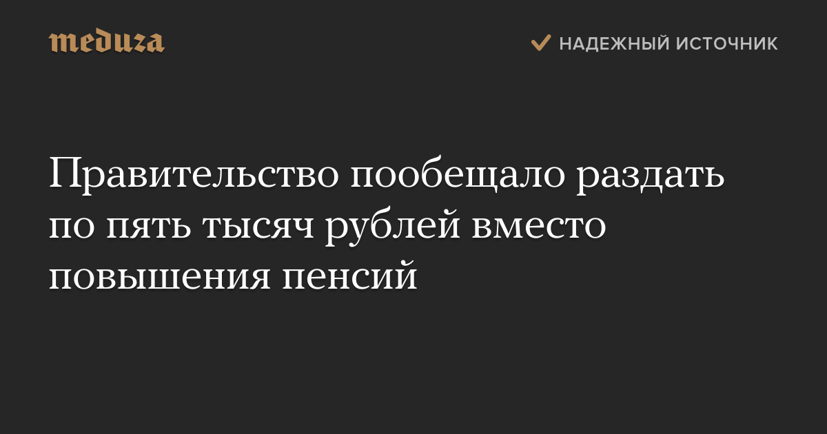 Правительство пообещало раздать по пять тысяч рублей вместо повышения пенсий