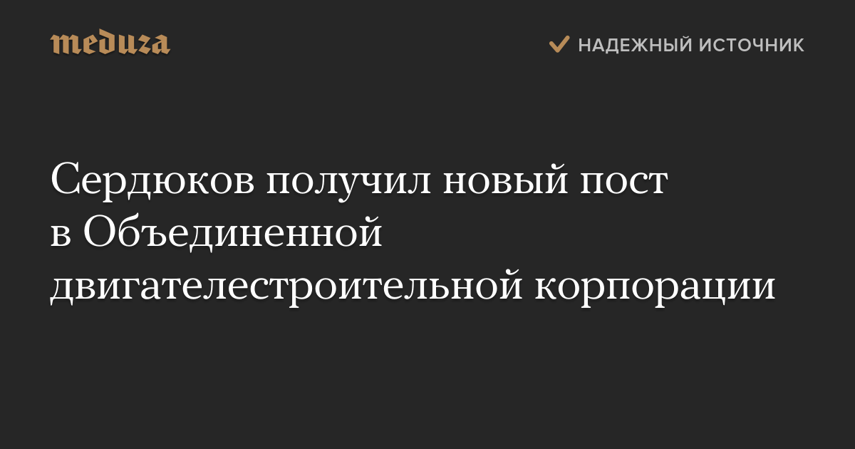 Как сообщается на сайте ОДК, Сердюков стал председателем комитета по стратегии и комитета по кадрам и вознаграждениям при совете директоров корпорации.