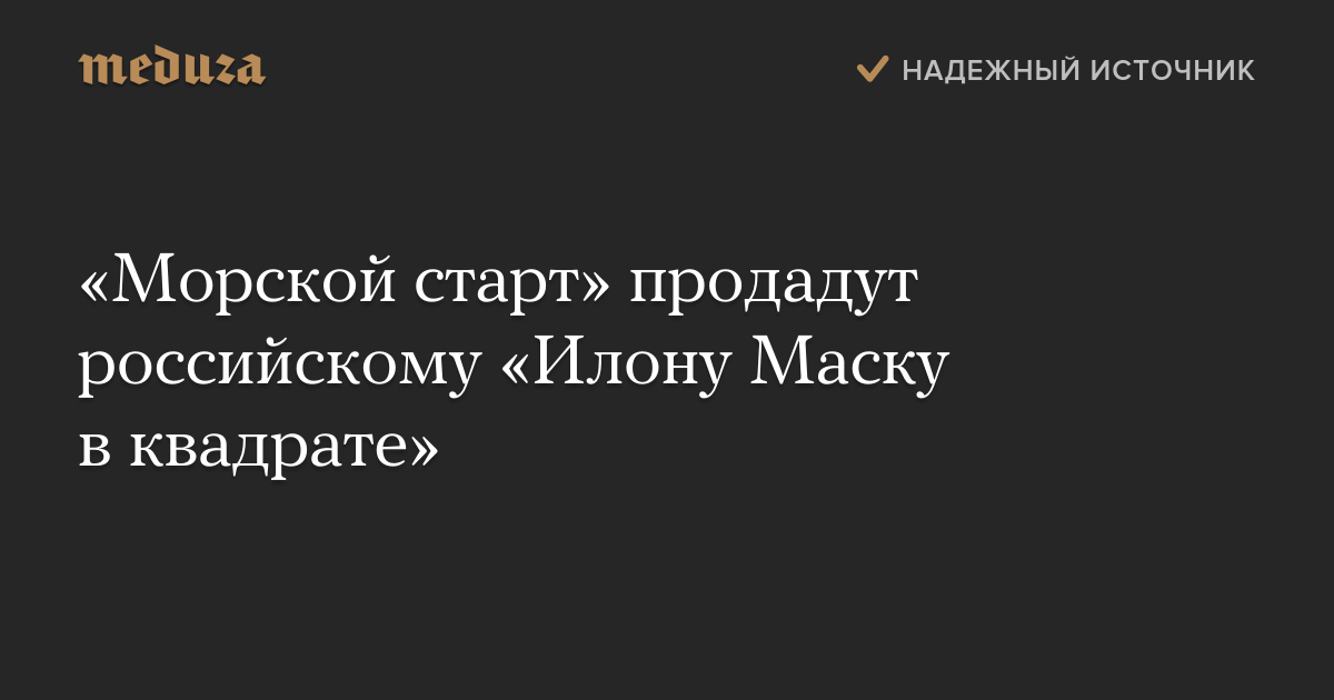«Морской старт» продадут российскому «Илону Маску в квадрате»