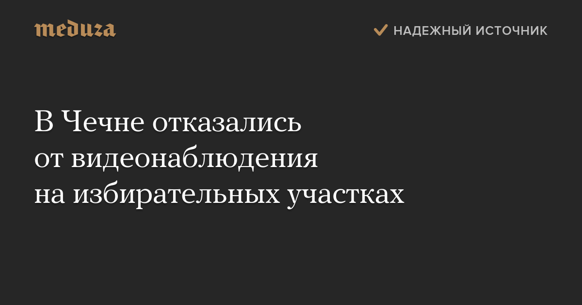 Избирком Чечни принял решение отказаться от камер видеонаблюдения на избирательных участках в Единый день голосования — 18 сентября.