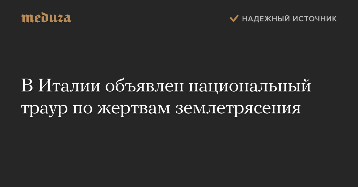 В Италии в субботу, 27 августа, объявлен национальный траур по погибшим в результате землетрясения, произошедшего в центральной части страны.