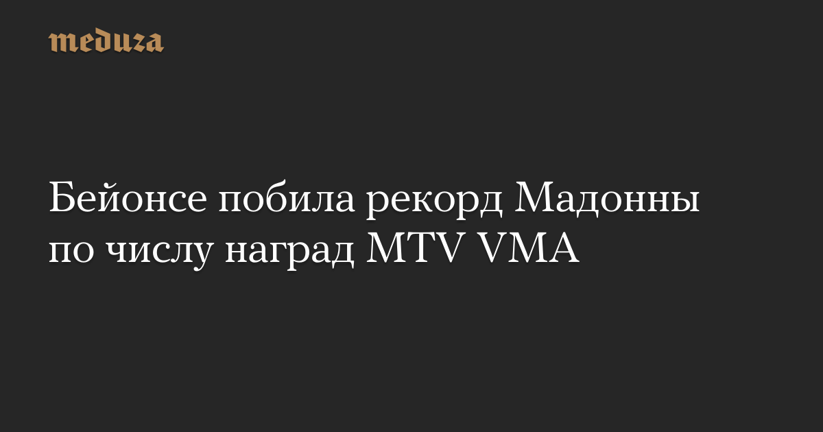 Бейонсе побила рекорд Мадонны по числу наград MTV VMA