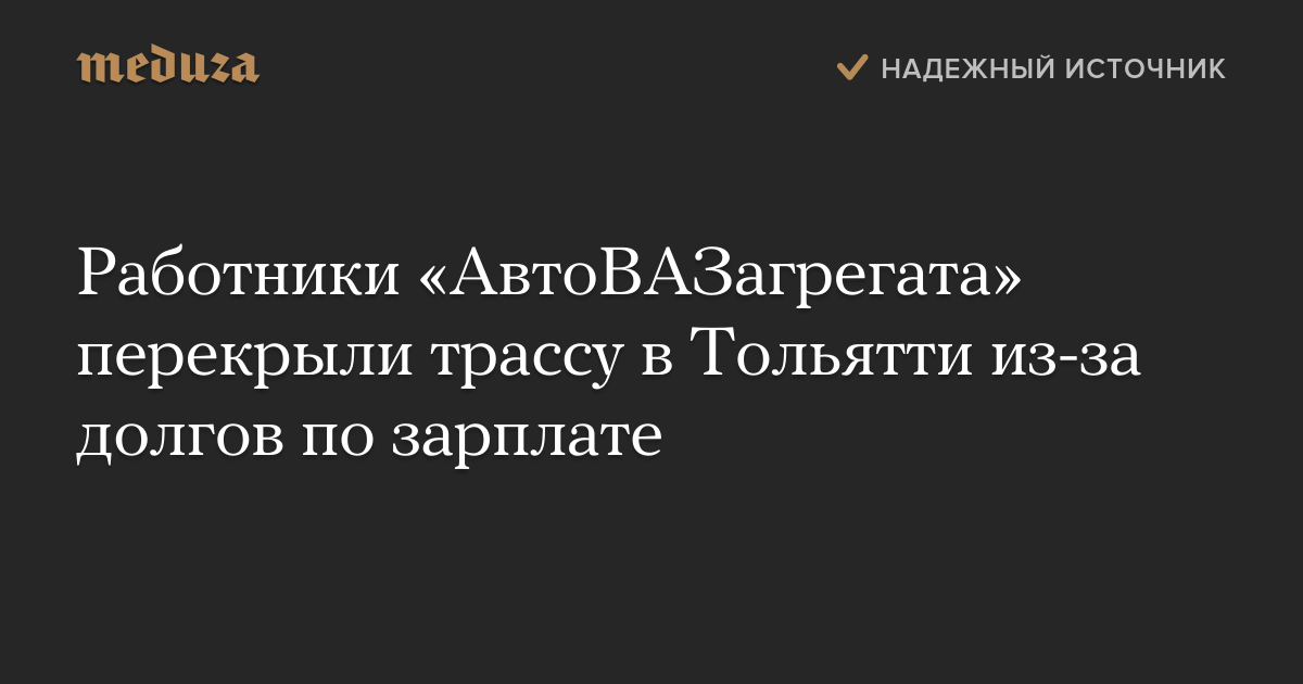 Работники «АвтоВАЗагрегата» перекрыли трассу в Тольятти из-за долгов по зарплате