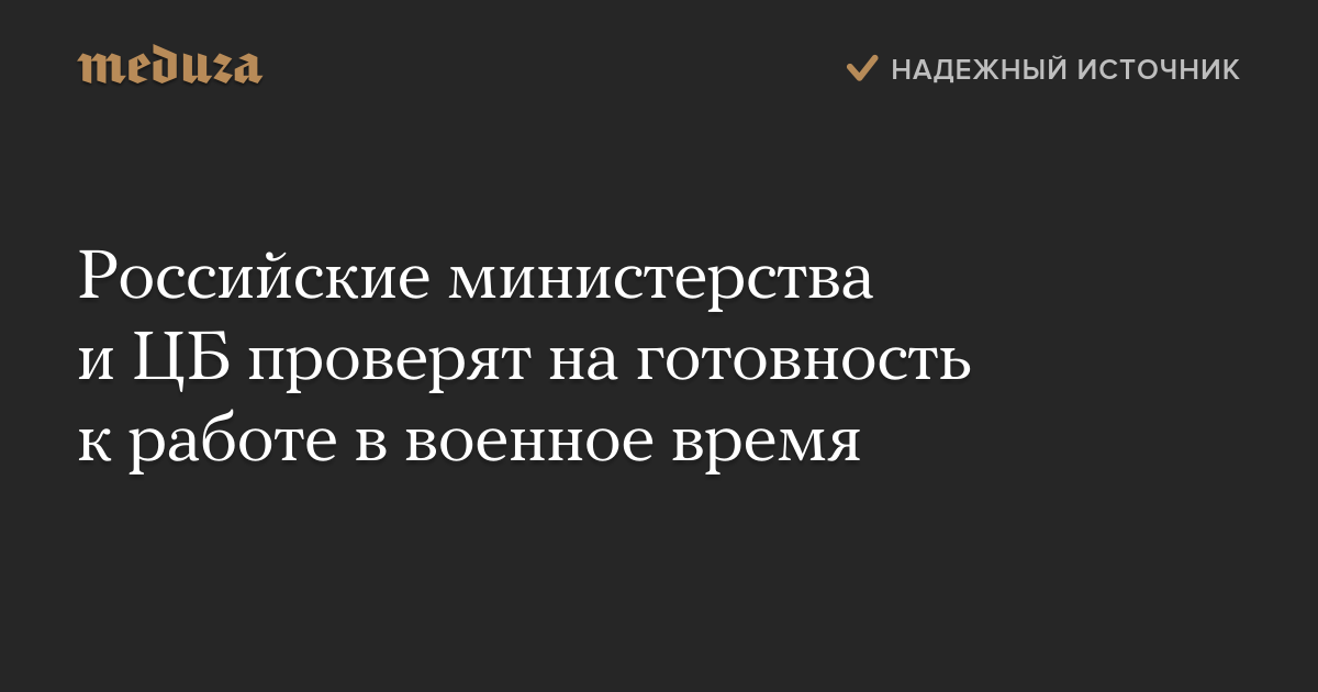 Российские министерства и ЦБ проверят на готовность к работе в военное время