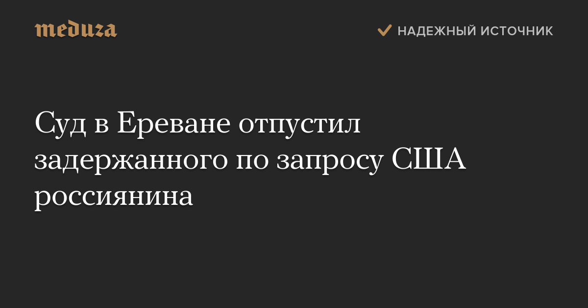 Суд в Ереване отпустил задержанного по запросу США россиянина