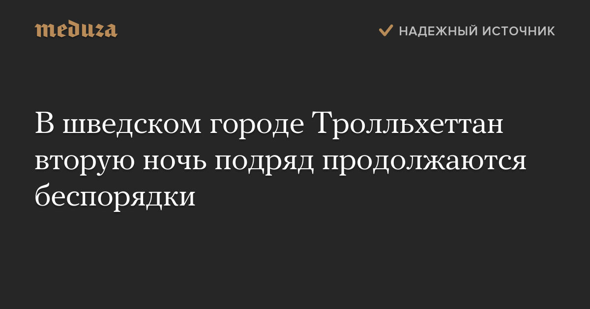 В шведском городе Тролльхеттан вторую ночь подряд продолжаются беспорядки