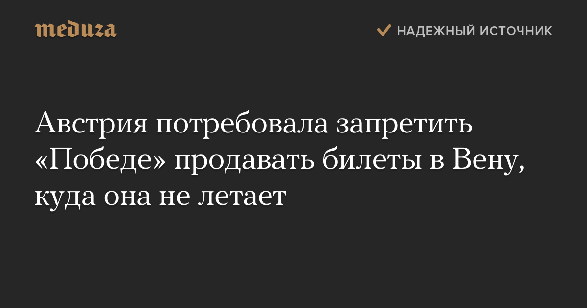 Австрия потребовала, чтобы российская авиакомпания «Победа» прекратила продажу билетов в Вену. Об этом говорится в меморандуме, подписанном российской и австрийской стороной.