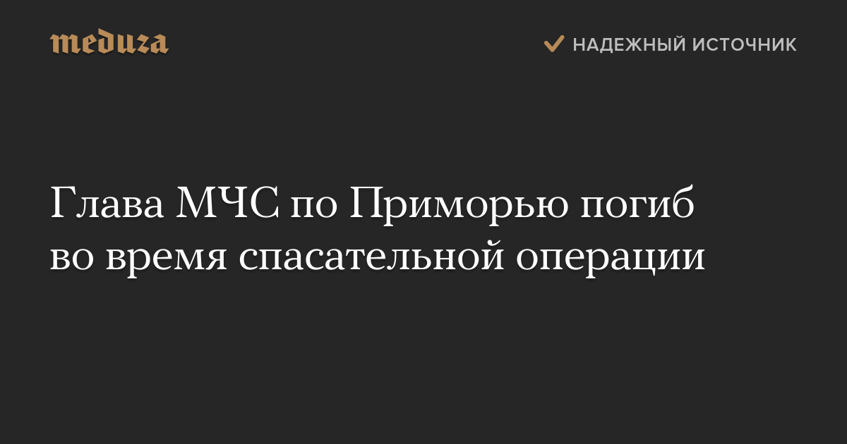 Глава ГУМЧС по Приморью Олег Федюра погиб во время операции по ликвидации последствий тайфуна, сообщает «Интерфакс» со ссылкой на пресс-службу МЧС.