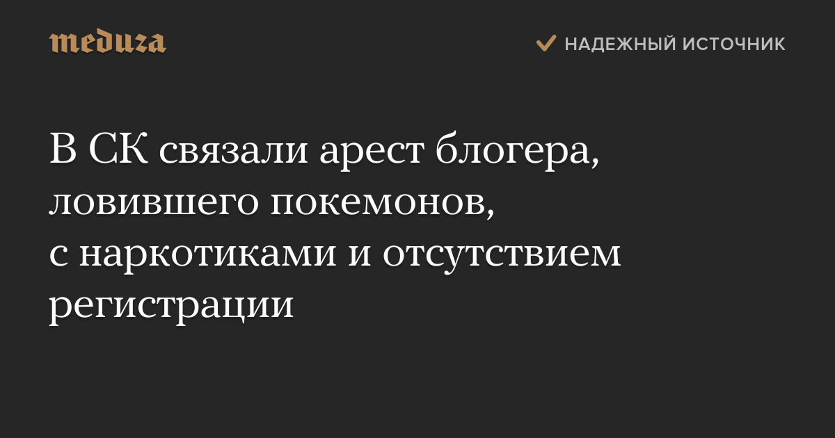 В СК связали арест блогера, ловившего покемонов, с наркотиками и отсутствием регистрации
