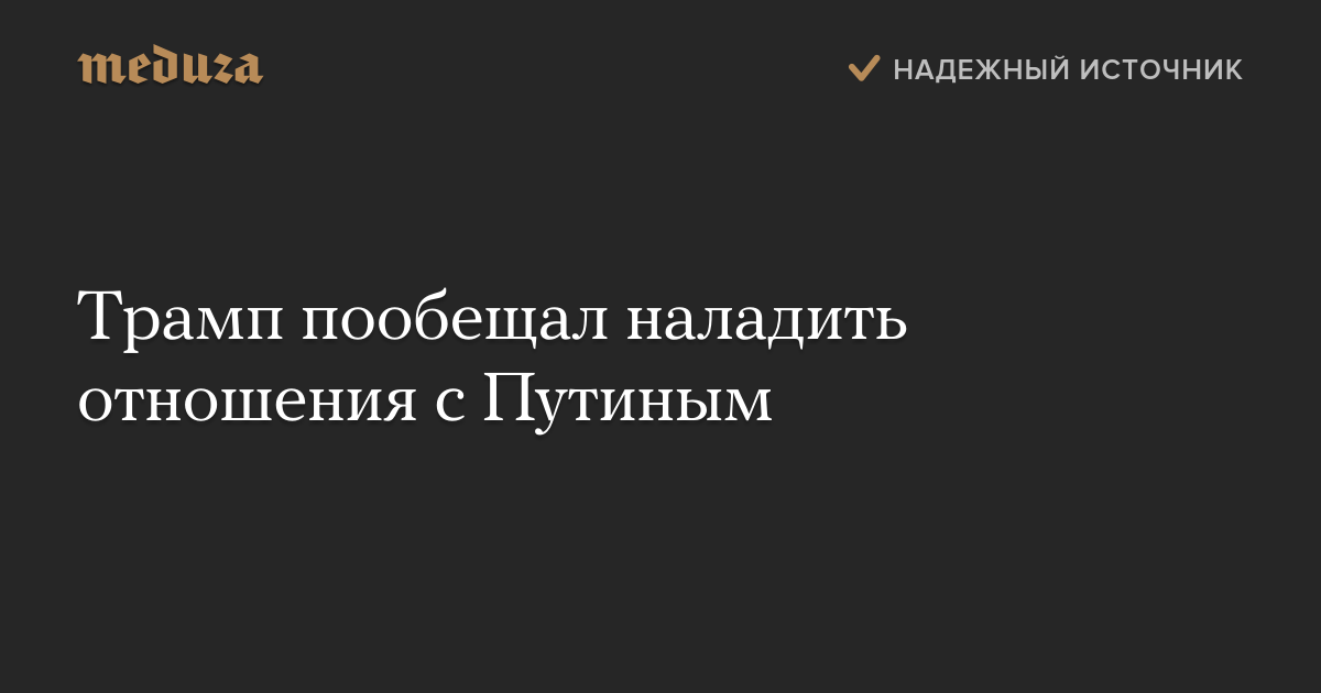 Во время кампании Дональд Трамп неоднократно высказывался о Владимире Путине в позитивном ключе. Среди прочего, он говорил, что для него «большая честь» получить похвалу от Путина, когда тот назвал его «талантливым человеком».