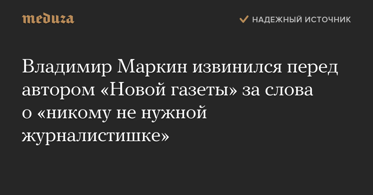 Владимир Маркин извинился перед автором «Новой газеты» за слова о «никому не нужной журналистишке»
