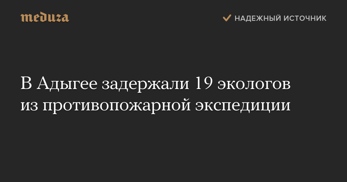 В Адыгее полиция задержала 19 человек из противопожарной экспедиции «Гринписа» и «Экологической вахты по Северному Кавказу», на которых в ночь на 9 сентября было совершено нападение в Краснодарском крае. Об этом сообщил «Дождю» представитель «Экологической вахты» Дмитрий Шевченко.