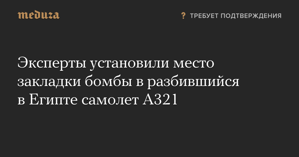 Взрывное устройство в самолете A321 российской компании Metrojet, потерпевшим крушение на Синайском полуострове, было установлено в отсеке для негабаритного багажа.