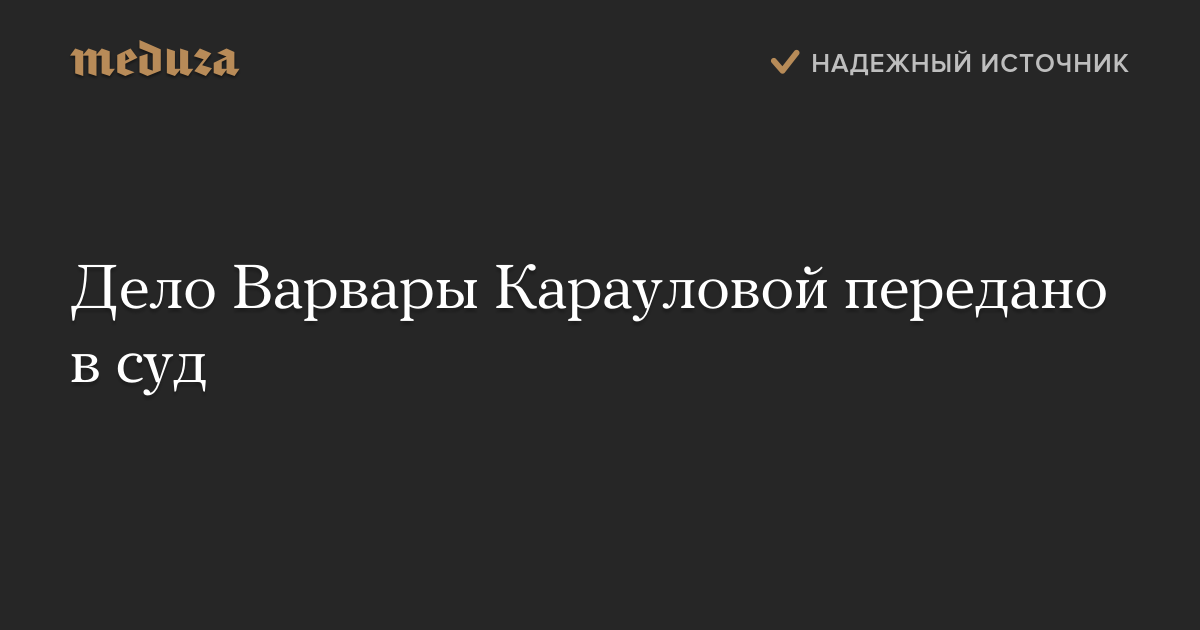 Уголовное дело в отношении Александры Ивановой (Варвары Карауловой) о связях с «Исламским государством» передано в суд, заявил ее адвокат Сергей Бадамшин. По его словам, прокуратура утвердила обвинительное заключение и передала его и все материалы в Московский окружной военный суд.