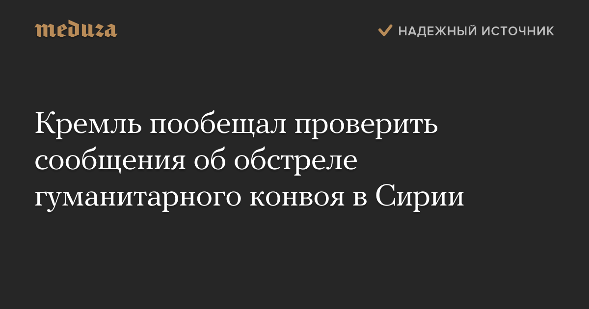 Кремль пообещал проверить сообщения об обстреле гуманитарного конвоя в Сирии