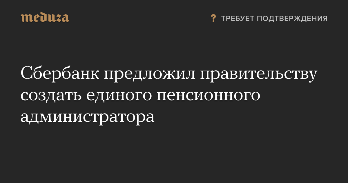 Сбербанк предложил правительству создать единого пенсионного администратора