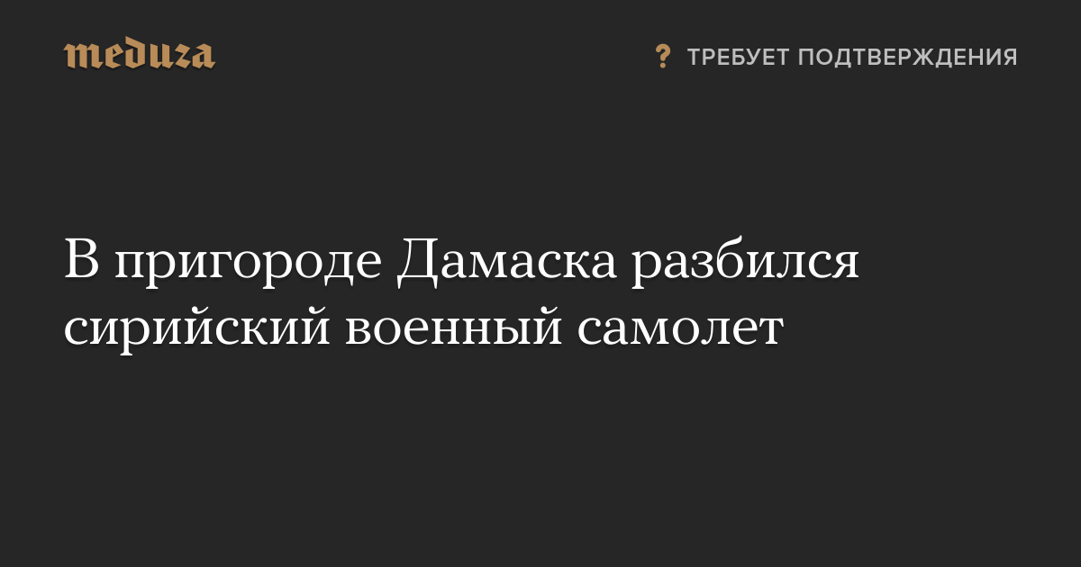 Военный самолет потерпел крушение в северном пригороде столицы Сирии, сообщает Reuters со ссылкой на базирующуюся в Лондоне правозащитную организацию Syrian Observatory for Human Rights.