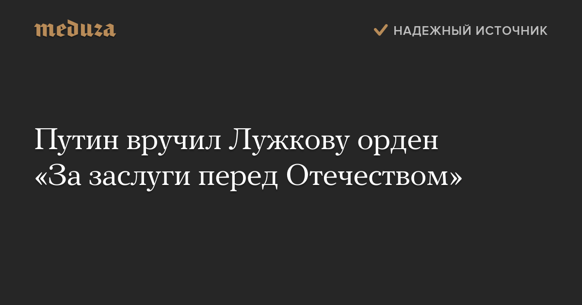 Президент РФ Владимир Путин наградил бывшего мэра Москвы Юрия Лужкова орденом «За заслуги перед Отечеством» четвертой степени.