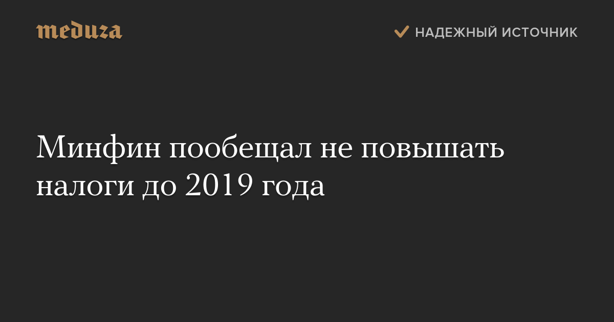 Минфин пообещал не повышать налоги до 2019 года