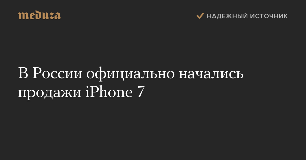 В России в ночь на 23 сентября начались официальные продажи iPhone 7 и iPhone 7 Plus. Новые модели телефонов поступили в продажу в розничных сетях сотовых операторов (МТС, «Мегафон» и «Билайн»), в торговых точках крупнейших ритейлеров электроники и бытовой техники, а также в онлайн-магазинах.