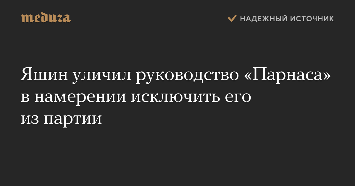Заместитель председателя партии «Парнас» Илья Яшин заявил, что руководство партии во главе с Михаилом Касьяновым намерено исключить его из партии. Так он прокомментировал соответствующее обращение удмуртского отделения «Парнаса», опубликованное 25 сентября.