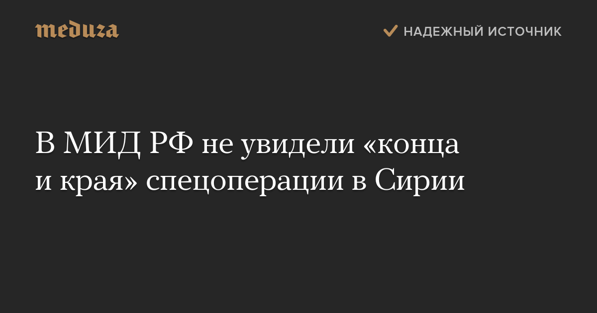 В МИД РФ не увидели «конца и края» спецоперации в Сирии