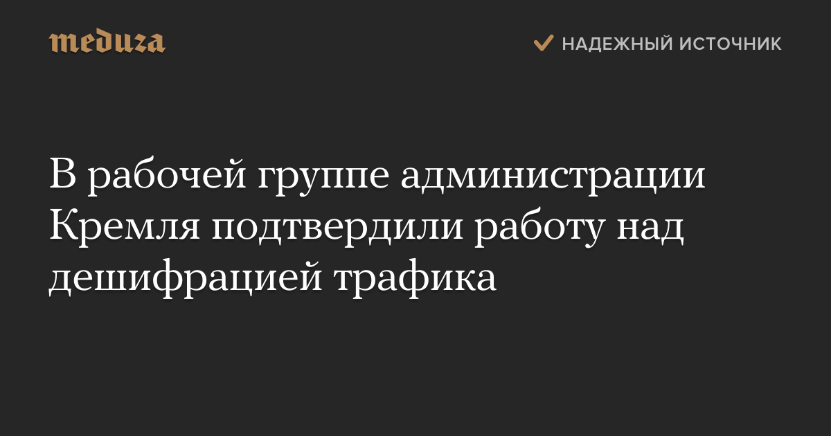 В рабочей группе администрации Кремля подтвердили работу над дешифрацией трафика