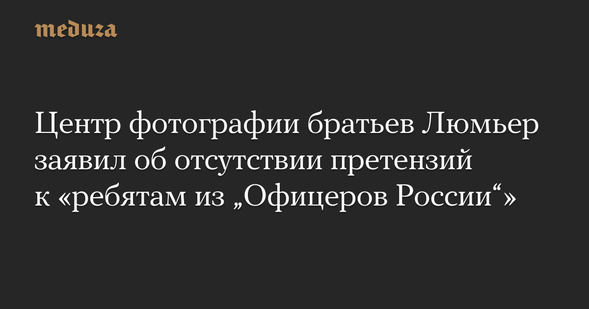 Центр фотографии братьев Люмьер заявил об отсутствии претензий к «ребятам из „Офицеров России“»