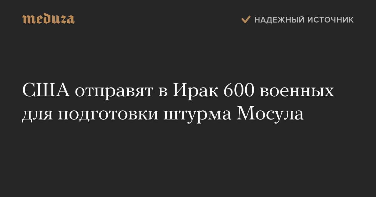 США отправят в Ирак 600 военных для подготовки штурма Мосула